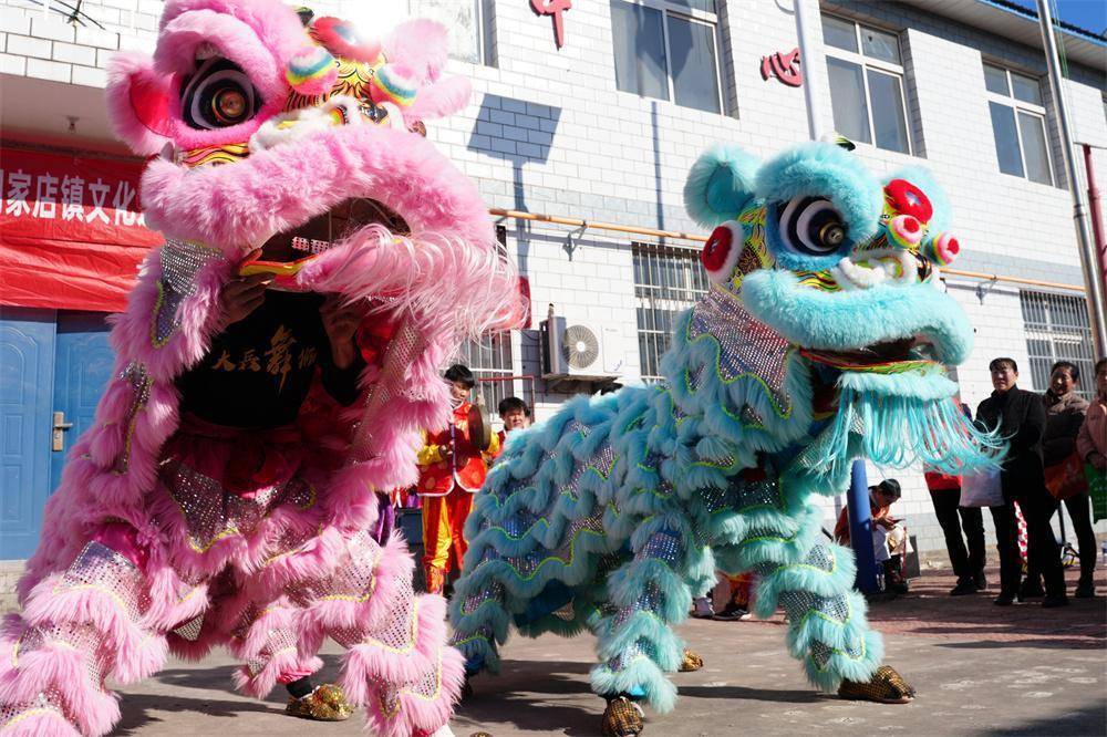 11月19日,舞狮表演在迁安市阎家店镇上演。张泽慧摄