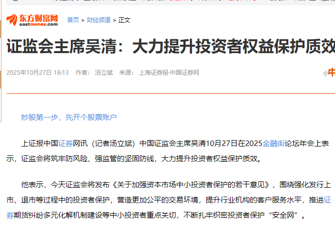 就在博时基金内部风波不断之际,证监会主席吴清在2025金融街论坛年会上明确表示,将“大力提升投资者权益保护质效”,并发布《关于加强资本市场中小投资者保护的若干意见》,围绕发行上市、退市、交易环境、纠纷化解等方面织密投资者保护“安全网”。