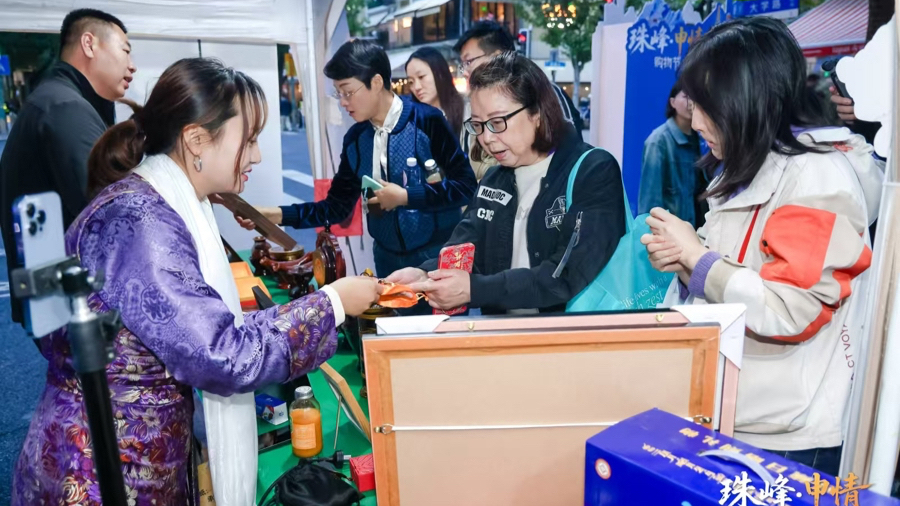 作为本次购物节的“重头戏”,同步开启的日喀则消费帮扶专场市集设置了20多个特色摊位、4大主题展示区,集中展示来自雪域高原的有机农产品、非遗工艺,并通过“线下体验+线上直播”打造沉浸式消费场景。活动期间,市集举办地大学路解锁“雪域风情皮肤”,氛围感拉满,市民游客可免费体验精美藏族服饰街拍,精心布置的藏式合影打卡墙更成为市集中最受欢迎的互动项目之一。